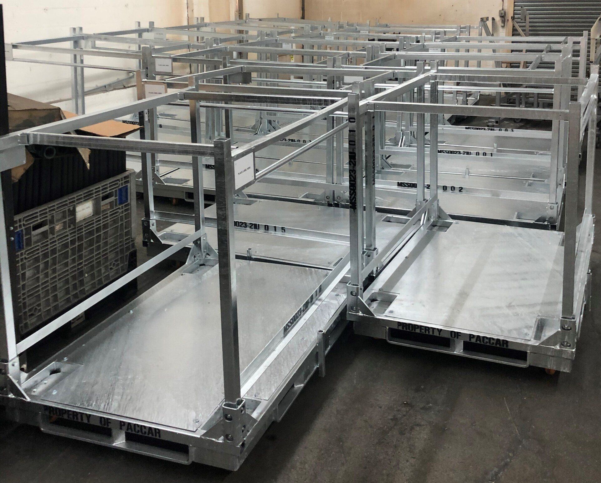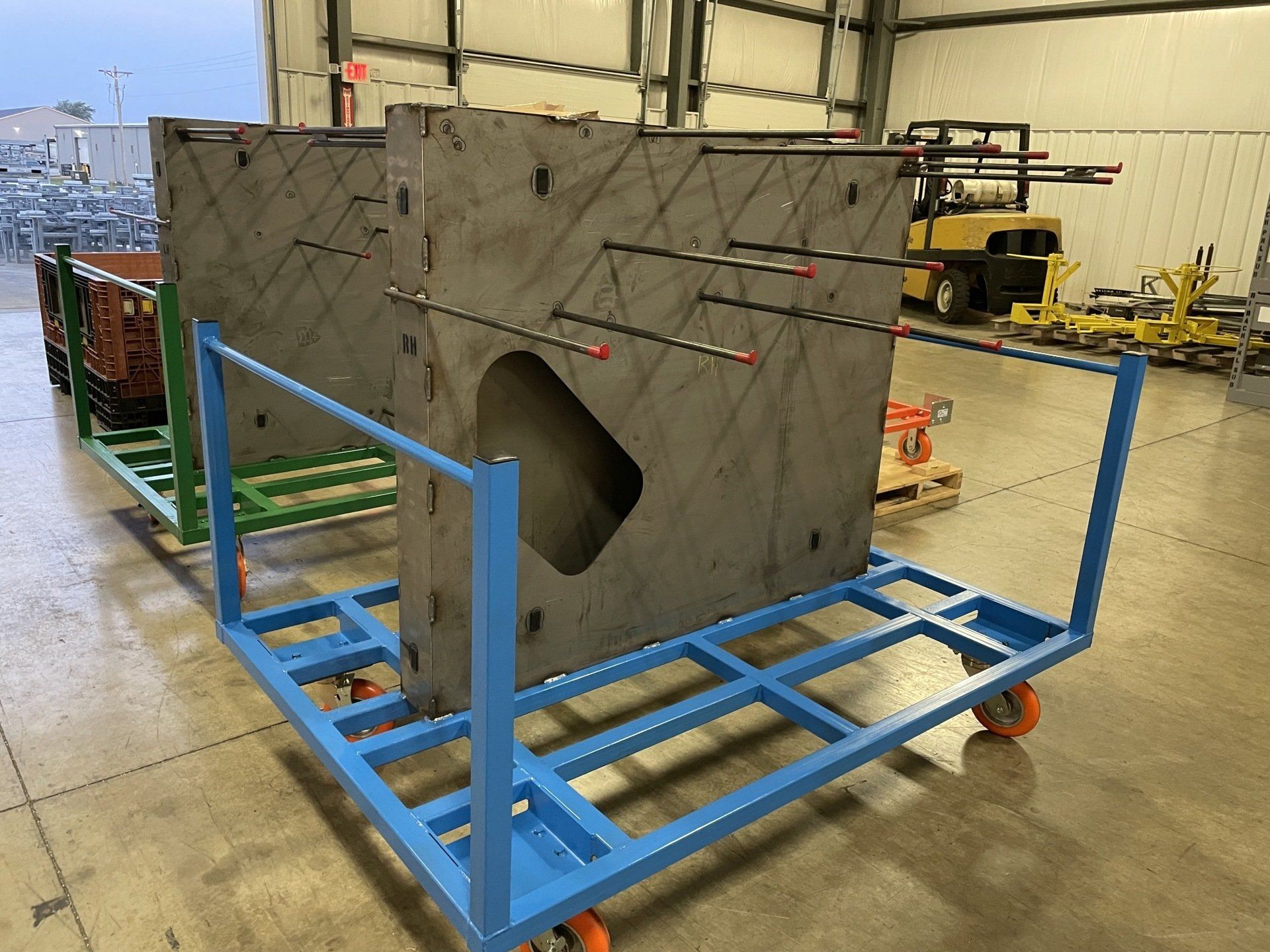 Utilizing our knowledge gained from years of designing returnable shipping racks and in-plant WIP racks, we also design a wide variety of carts and dollies. An existing automated or manual system can be incorporated into the designs, or each item can be designed to work independently. Simple or complex Ranly Design can create the cart or dolly to match any of your needs. Our dollies and carts are custom designed to meet your exact specification and material handling requirements. Custom dollies and WIP carts increase efficiency in manufacturing and warehousing facilities. This allows for better product flow, ease of mobility and increased productivity. It also increases safety and reduces material handling requiring the use of fork lifts or powered equipment. Reducing the loss time waiting for on product changeover lineside.